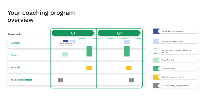 Create a leadership coaching program perfectly aligned to your business goals, team size, and organizational needs. Only pay for what you use.